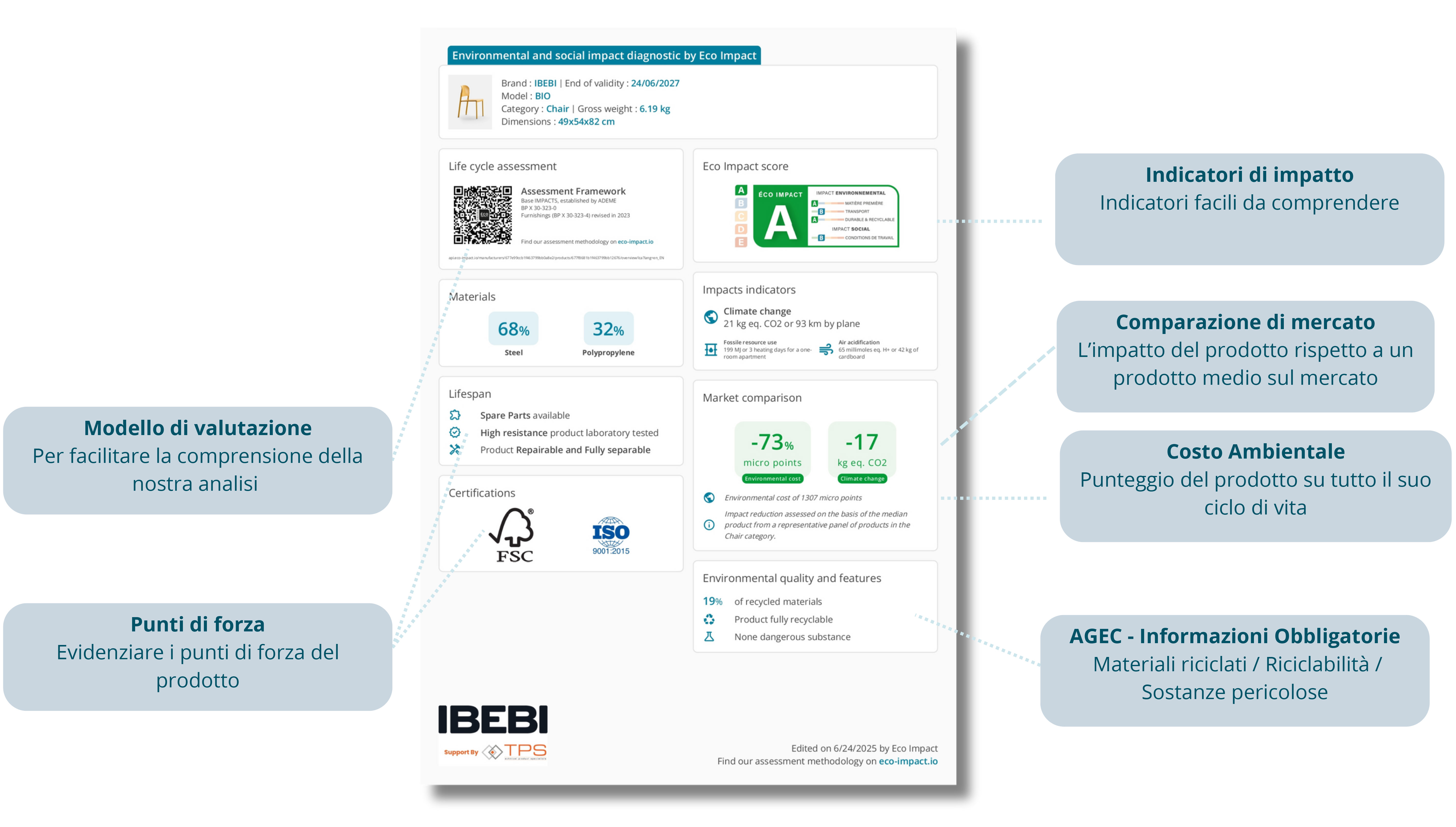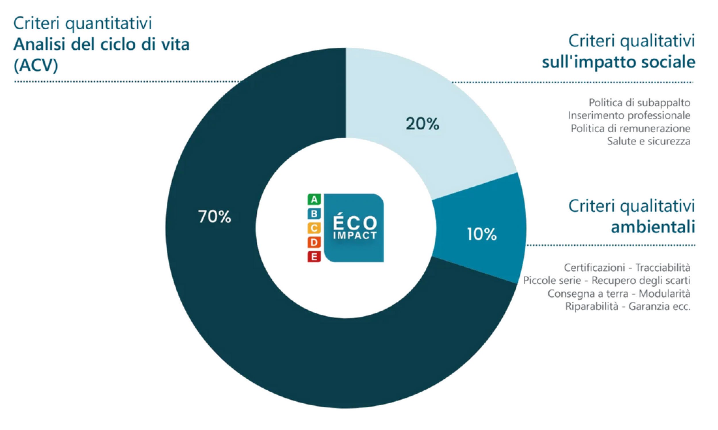 Eco Impact è un sistema di valutazione Francese che misura l’impatto ambientale dei prodotti d’arredo. Utilizzando